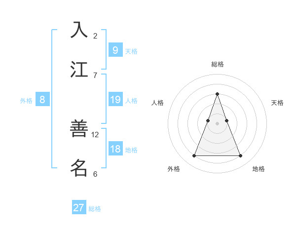 入江 善名さんの総格は27画の3点!