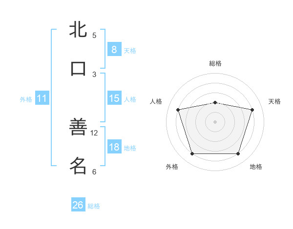 北口 善名さんの天格は8画の4点!