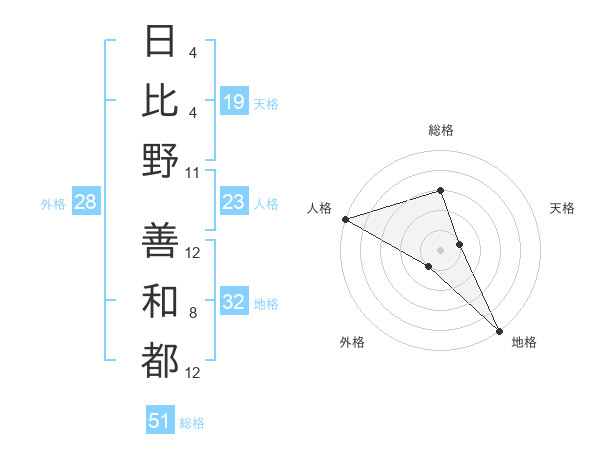 日比野 善和都さんを姓名の画数から五運を鑑定