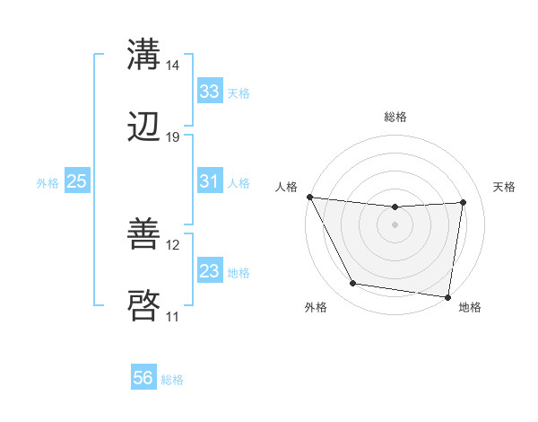 溝辺 善啓さんを姓名の画数から五運を鑑定