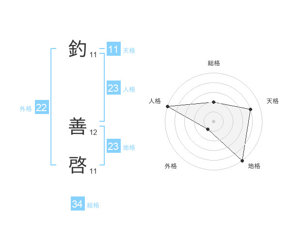 釣 善啓さんの人格は23画の5点!