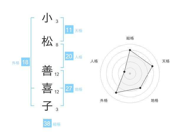 小松 善喜子さんの総格は38画の4点!
