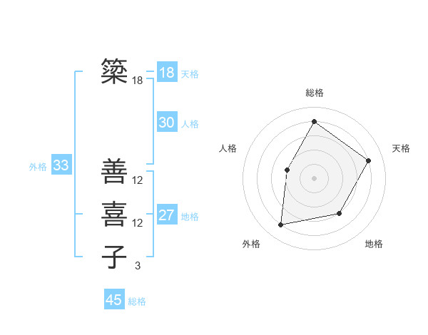 簗 善喜子さんの天格は18画の4点!
