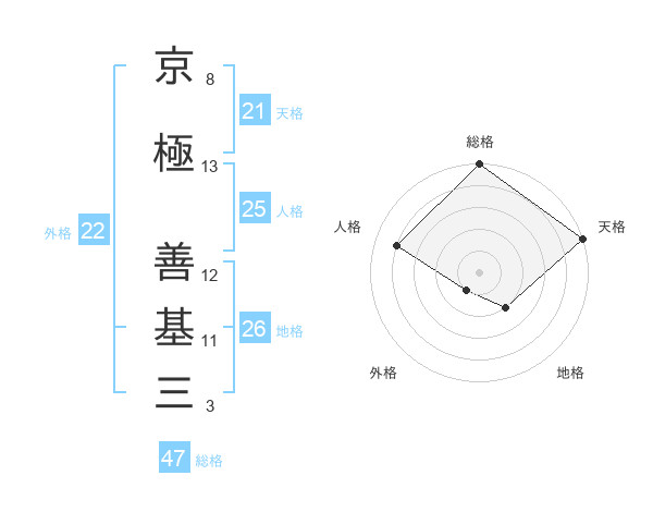 家系が持つ宿命的な運勢を表します。祖先から受け継いだ苗字ですので自分の力が及びません。家柄を象徴します。