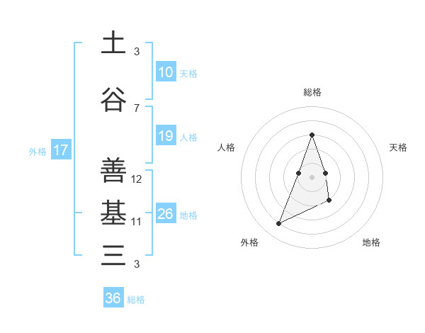 土谷 善基三さんの地格は26画の2点!
