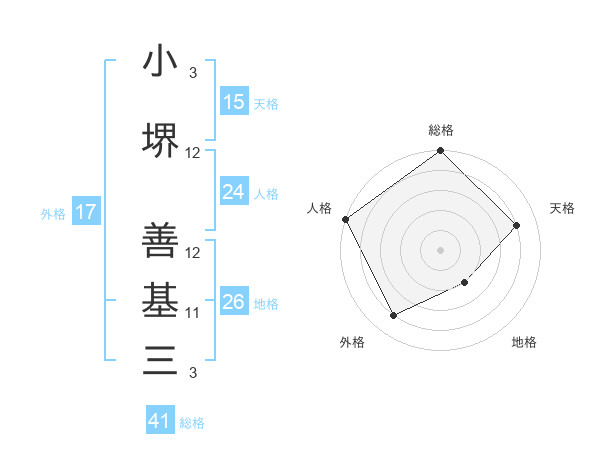 小堺 善基三さんの地格は26画の2点!