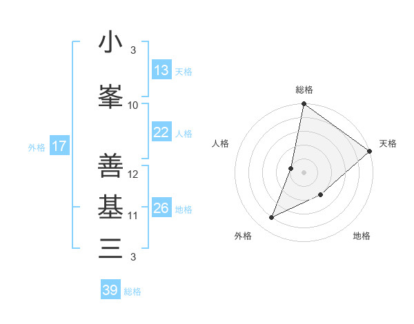 小峯 善基三さんの天格は13画の5点!