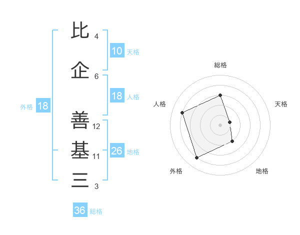 比企 善基三さんの外格は18画の4点!