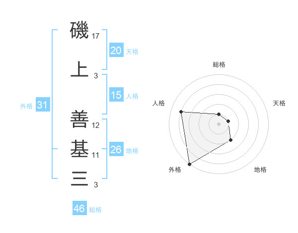 磯上 善基三さんを姓名の画数から五運を鑑定