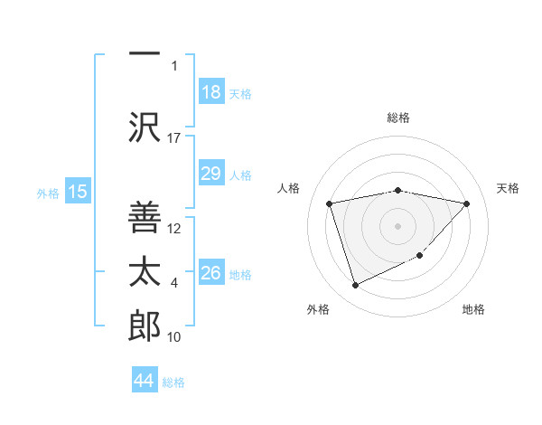 一沢 善太郎さんを姓名の画数から五運を鑑定