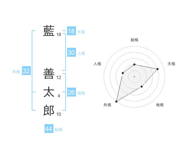 藍 善太郎さんの天格は18画の4点!