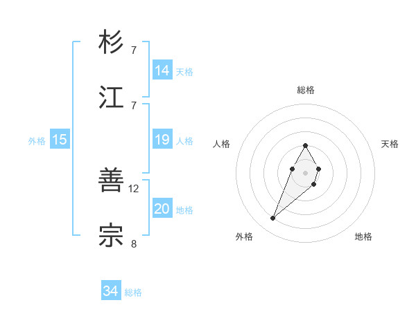 杉江 善宗さんの総格は34画の2点!