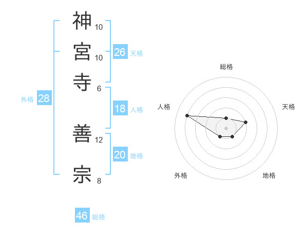 神宮寺 善宗さんを姓名の画数から五運を鑑定