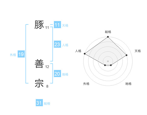 豚 善宗さんの総格は31画の5点!