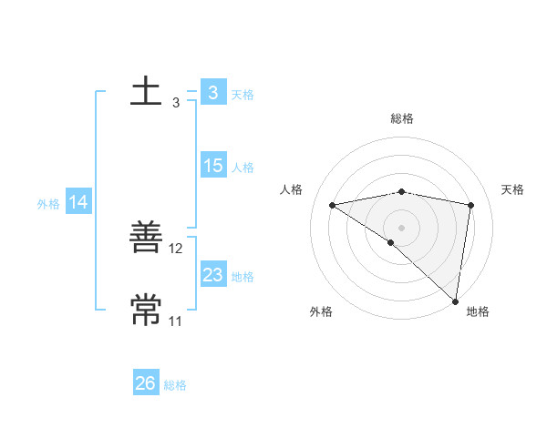 土 善常さんの総格は26画の2点!