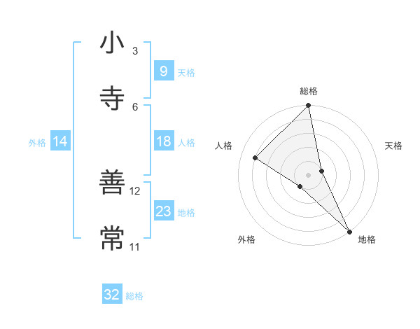 小寺 善常さんの総格は32画の5点!