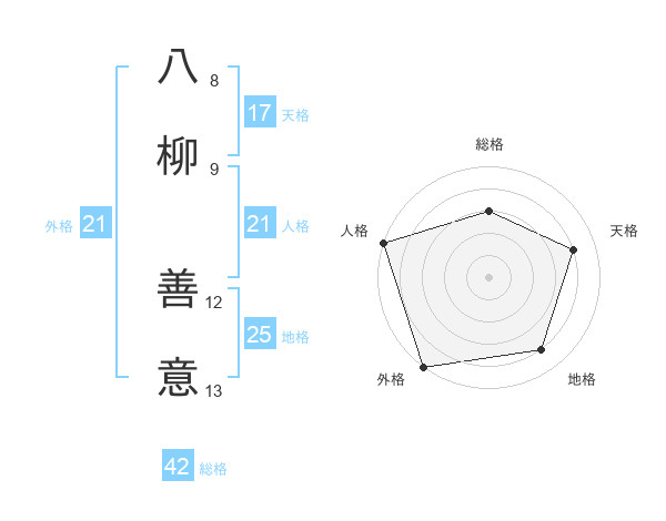 八柳 善意さんの外格は21画の5点!