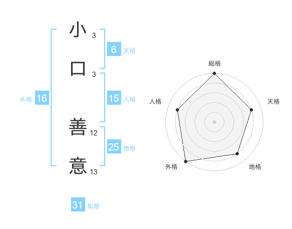 小口 善意さんの総格は31画の5点!