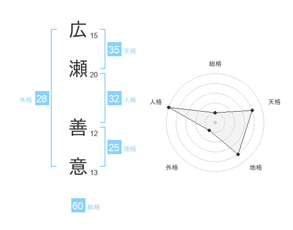 広瀬 善意さんの総格は60画の1点!