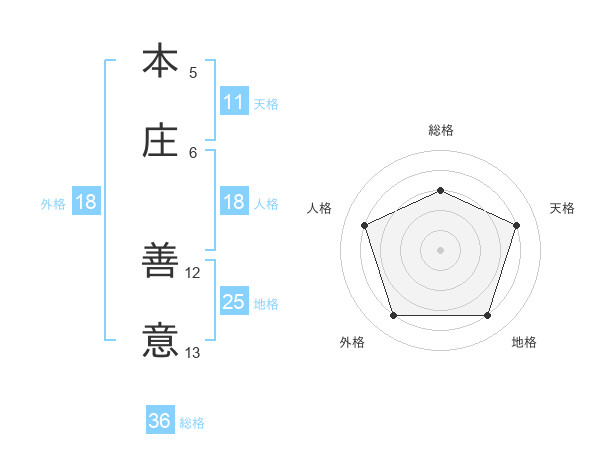 本庄 善意さんの天格は11画の4点!