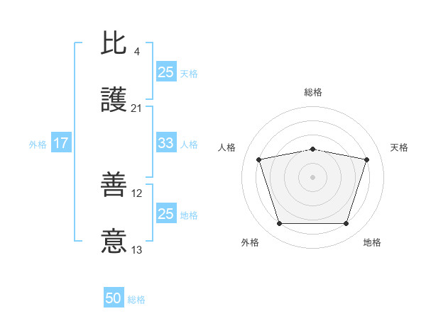 比護 善意さんの外格は17画の4点!