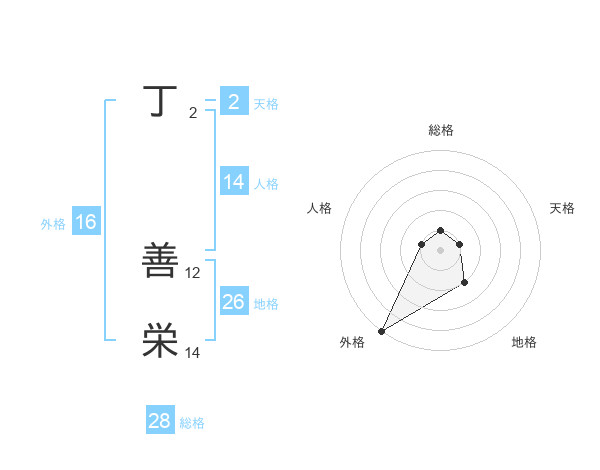 丁 善栄さんの外格は16画の5点!