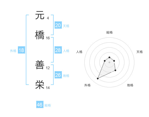 元橋 善栄さんの総格は46画の1点!