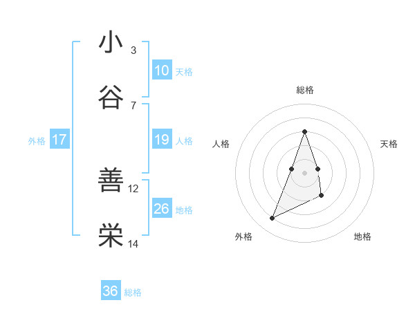 小谷 善栄さんを姓名の画数から五運を鑑定