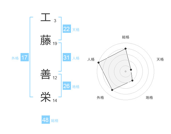 工藤 善栄さんの人格は31画の5点!