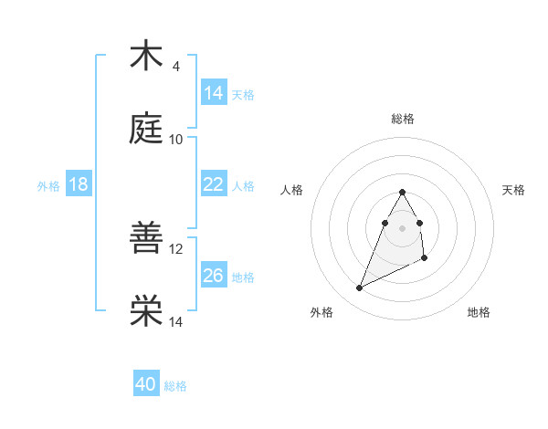 木庭 善栄さんを姓名の画数から五運を鑑定
