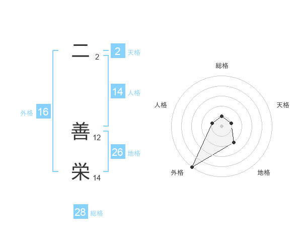二 善栄さんの総格は28画の1点!