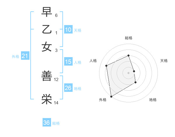 早乙女 善栄さんを姓名の画数から五運を鑑定