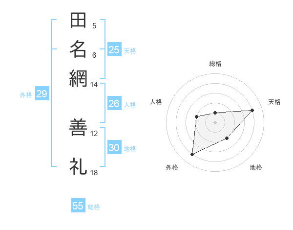 田名網 善礼さんを姓名の画数から五運を鑑定