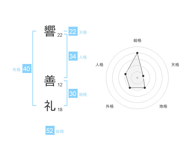 響 善礼さんの総格は52画の4点!