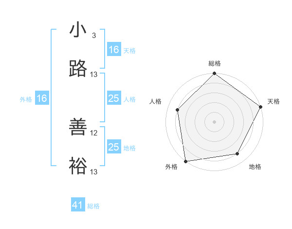 小路 善裕さんの地格は25画の4点!