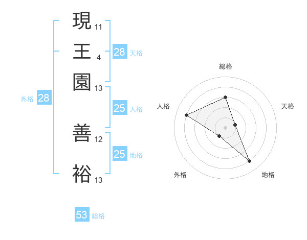 現王園 善裕さんの地格は25画の4点!