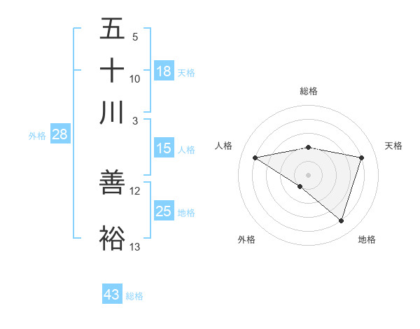 五十川 善裕さんを姓名の画数から五運を鑑定