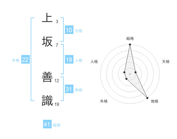 上坂 善識さんの地格は31画の5点!