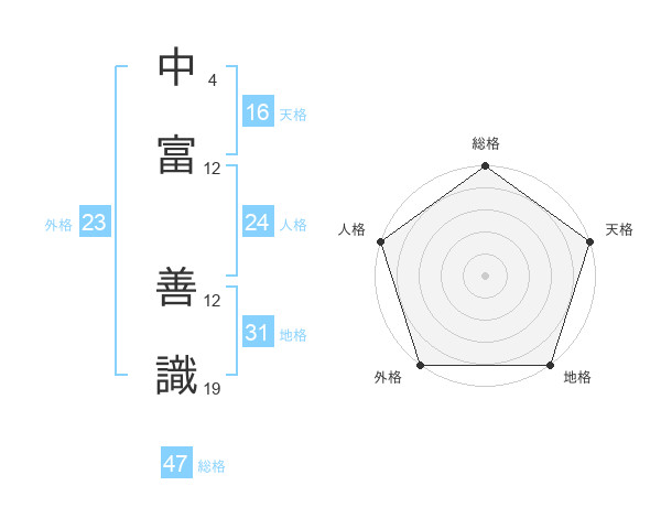 中富 善識さんの総格は47画の5点!