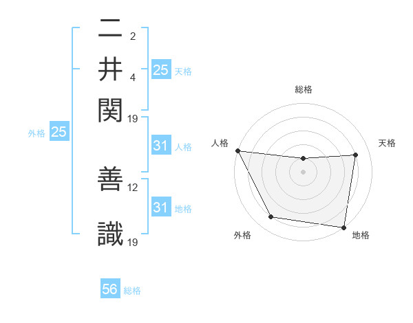 二井関 善識さんの総格は56画の1点!