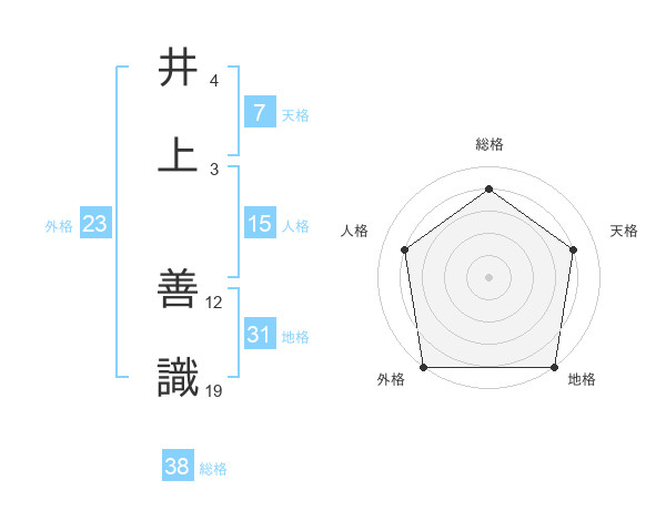井上 善識さんの総格は38画の4点!