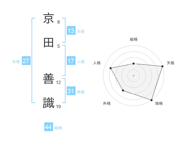 家系が持つ宿命的な運勢を表します。祖先から受け継いだ苗字ですので自分の力が及びません。家柄を象徴します。