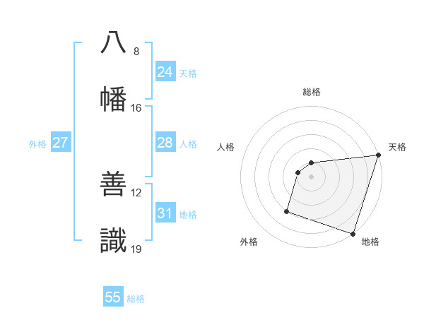 八幡 善識さんの天格は24画の5点!