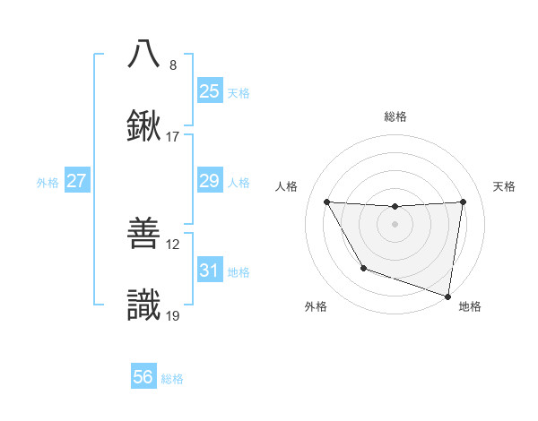 八鍬 善識さんの総格は56画の1点!