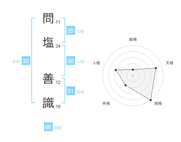 問塩 善識さんの総格は66画の1点!