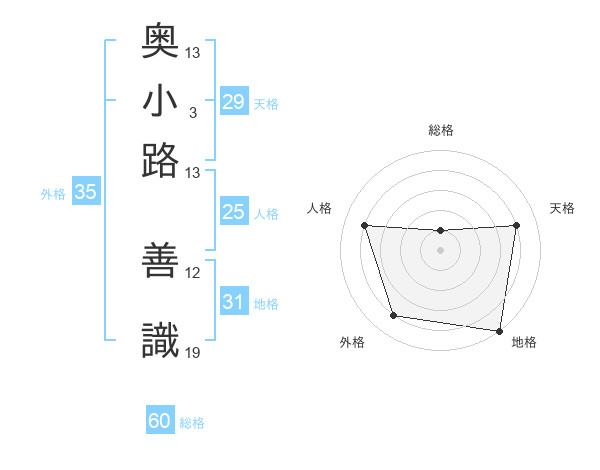 奥小路 善識さんの外格は35画の4点!