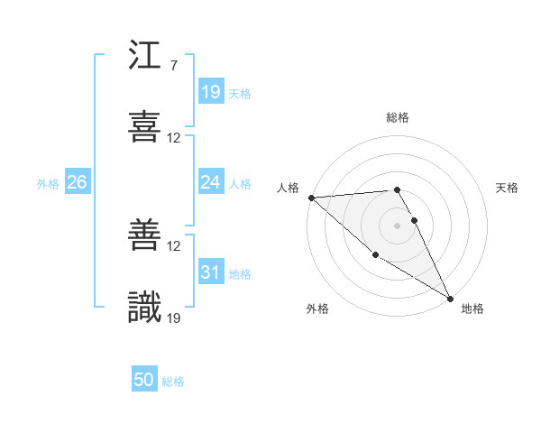 江喜 善識さんの総格は50画の2点!
