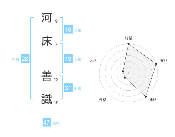 河床 善識さんの総格は47画の5点!