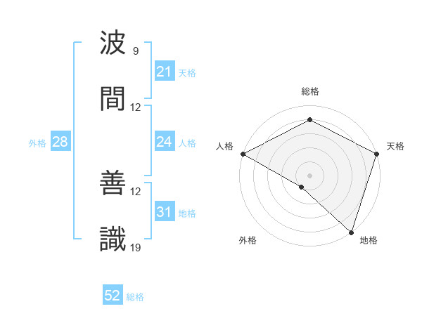 波間 善識さんの総格は52画の4点!