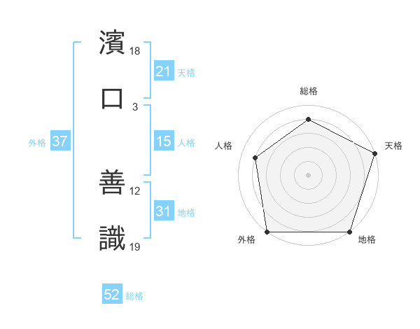 濱口 善識さんの総格は52画の4点!